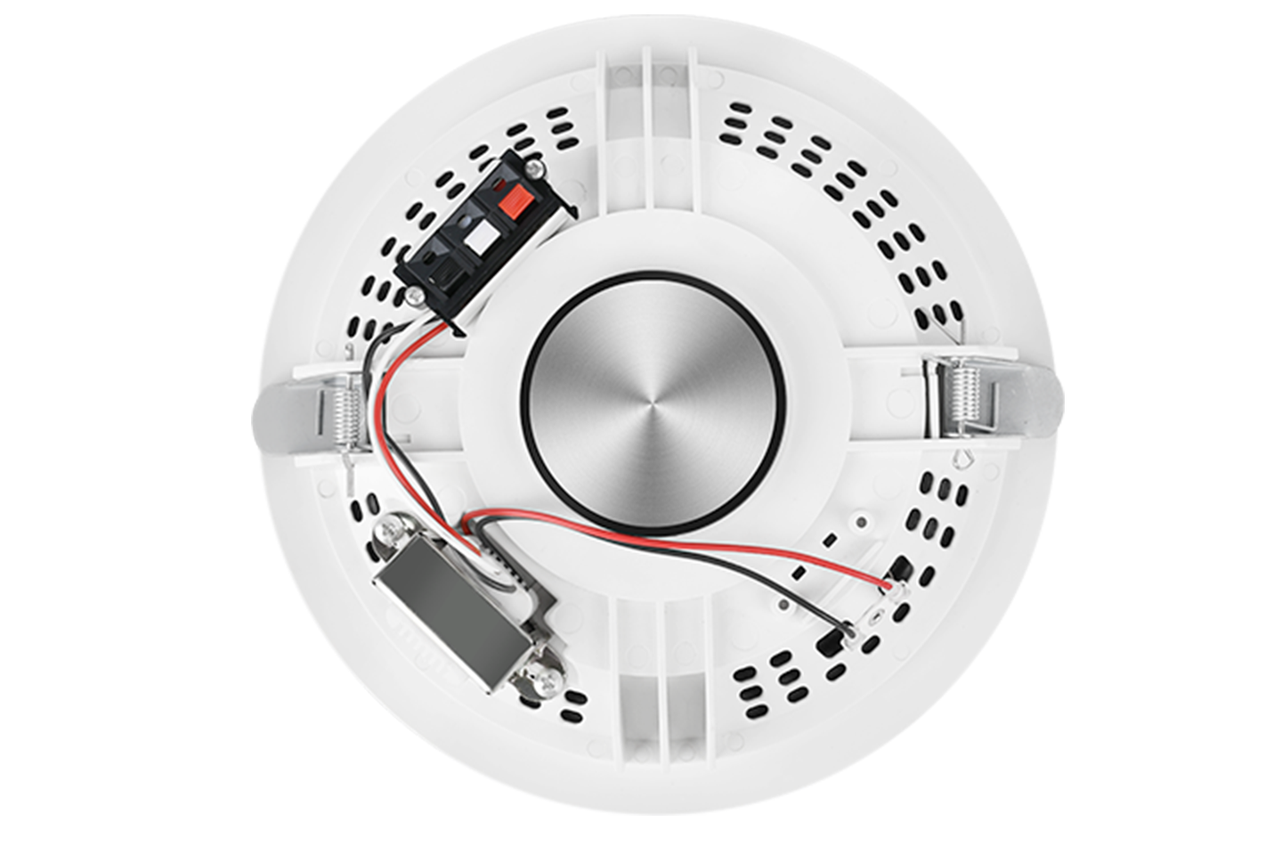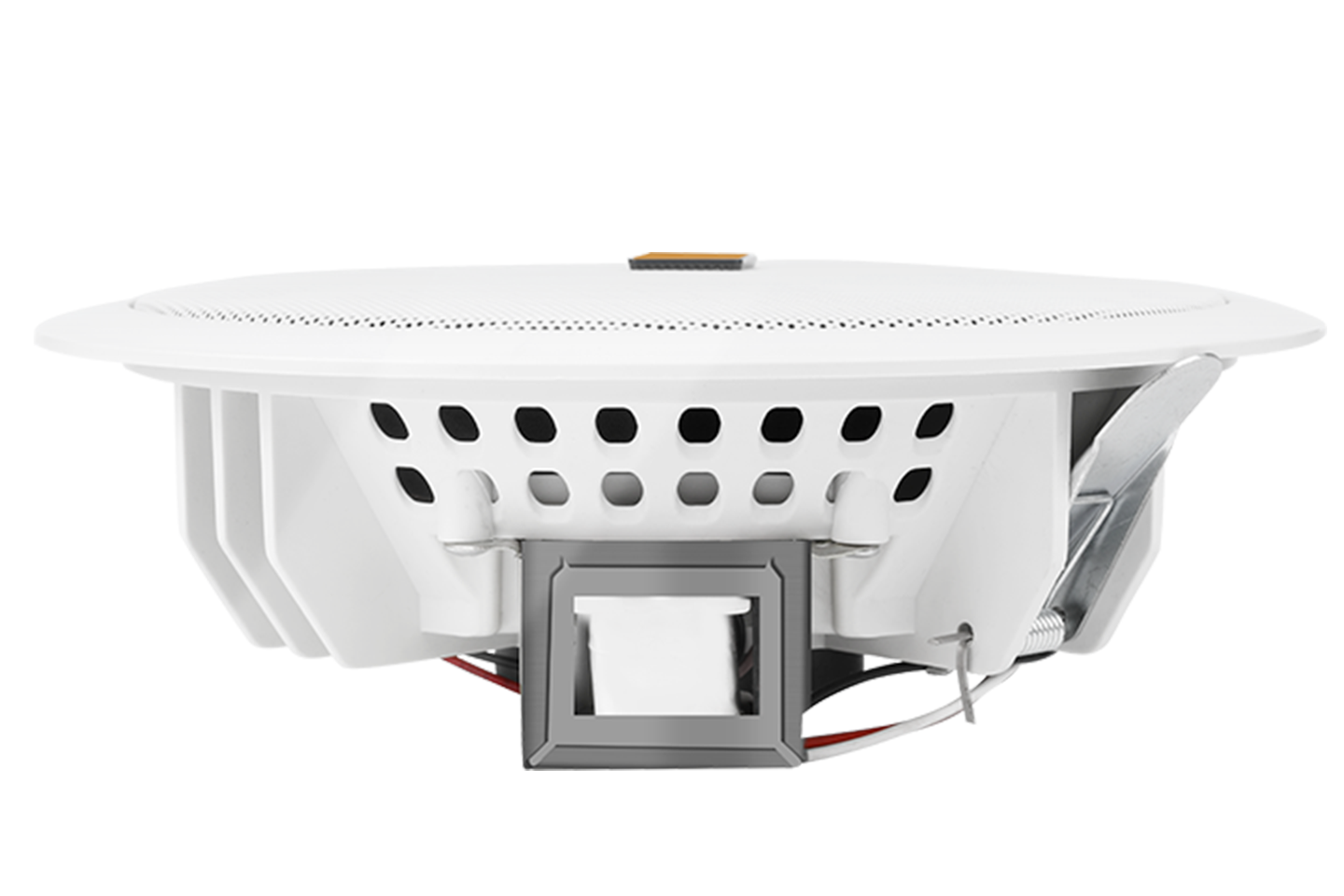 天花喇叭,又名吸顶喇叭,公共广播系统中重要的一员,是一种安装在天花板上的电声转换器件。用来将扩音机输入的音频电功率信号转换成声功率信号,以声波的方式辐射到需要供声的空间。一般用于公共场所,以定压方式输入音频功率信号,也有空间不太大的场所。例如酒店、工厂、学校、商场、超市、会所、别墅等各种场所,作为背景音乐、消防广播、寻呼广播、公共广播等。