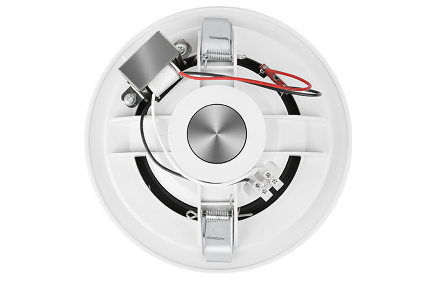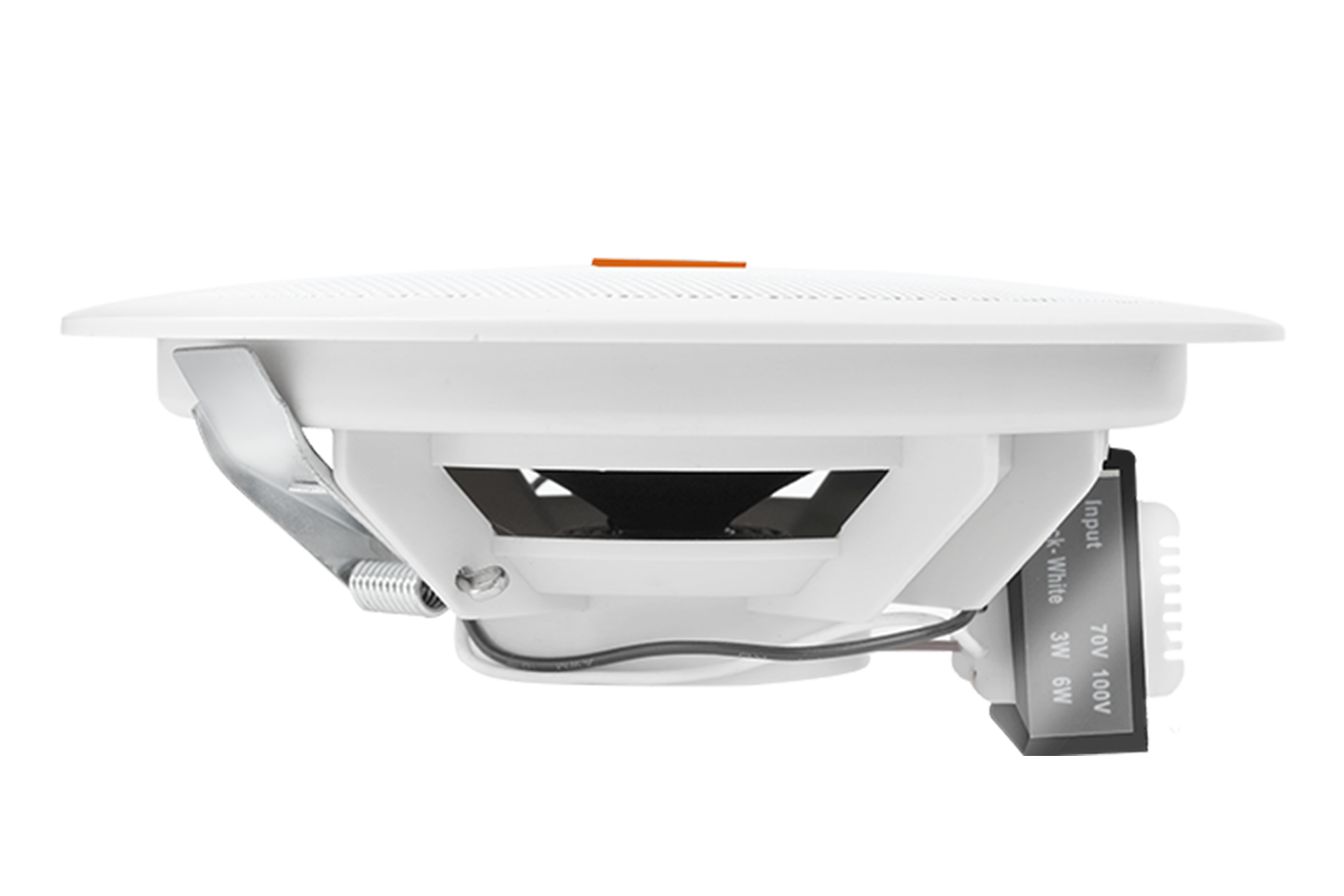天花喇叭,又名吸顶喇叭,公共广播系统中重要的一员,是一种安装在天花板上的电声转换器件。用来将扩音机输入的音频电功率信号转换成声功率信号,以声波的方式辐射到需要供声的空间。一般用于公共场所,以定压方式输入音频功率信号,也有空间不太大的场所。例如酒店、工厂、学校、商场、超市、会所、别墅等各种场所,作为背景音乐、消防广播、寻呼广播、公共广播等。