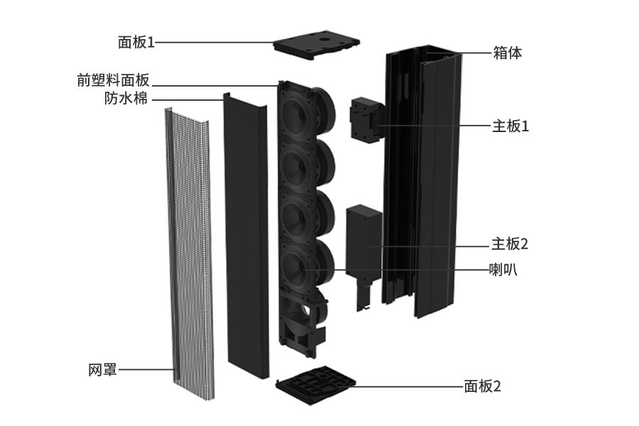 喇叭单元 | 2寸全频喇叭*4+1寸高音 | 2寸全频喇叭*8+1寸高音 | 2寸全频喇叭*12+1寸高音 |