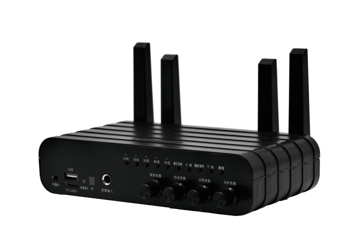 便携式红外线遥控器使得操作更加简便;通过蓝牙音频传输功能可以与智能手机或者iPad等设备进行连接,方便地接收来自数字移动设备的音频信息;前卫的APE数字音频解码芯片,内置监听音响,时时监听发射出去的广播内容,兼容多个接收终端同时进行播放和广播,为顾客提供真正的Hi-Fi音频体验,外接音源输入等端口为顾客组建影音娱乐系统提供一站式服务。