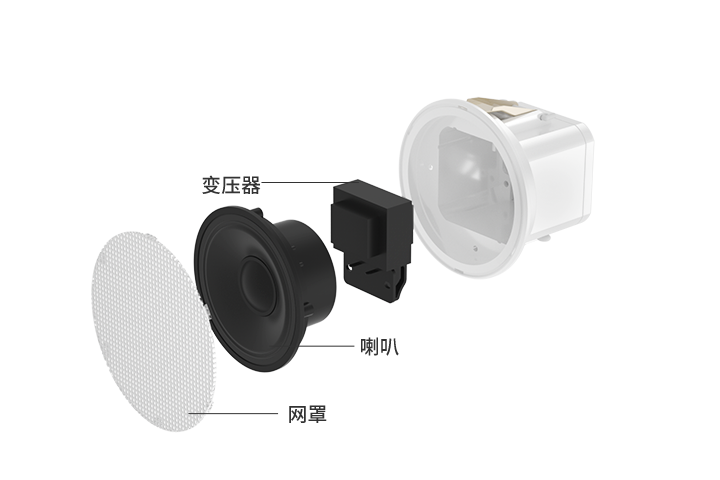 整体简洁美观大方,这是公司目前推出的最小2寸吸顶天花,所需吊顶距离小,适合会议室、卫生间等场所使用,立体声效果也非常出色,满足您欣赏美妙音乐的需求。