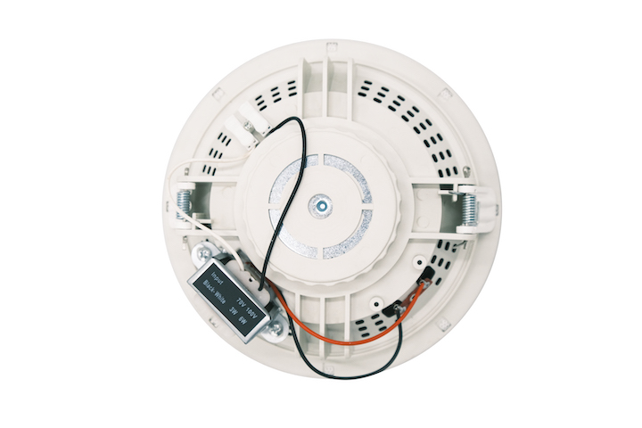 天花喇叭,又名吸顶喇叭,公共广播系统中重要的一员,是一种安装在天花板上的电声转换器件。用来将扩音机输入的音频电功率信号转换成声功率信号,以声波的方式辐射到需要供声的空间。一般用于公共场所,以定压方式输入音频功率信号,也有空间不太大的场所。例如酒店、工厂、学校、商场、超市、会所、别墅等各种场所,作为背景音乐、消防广播、寻呼广播、公共广播等。